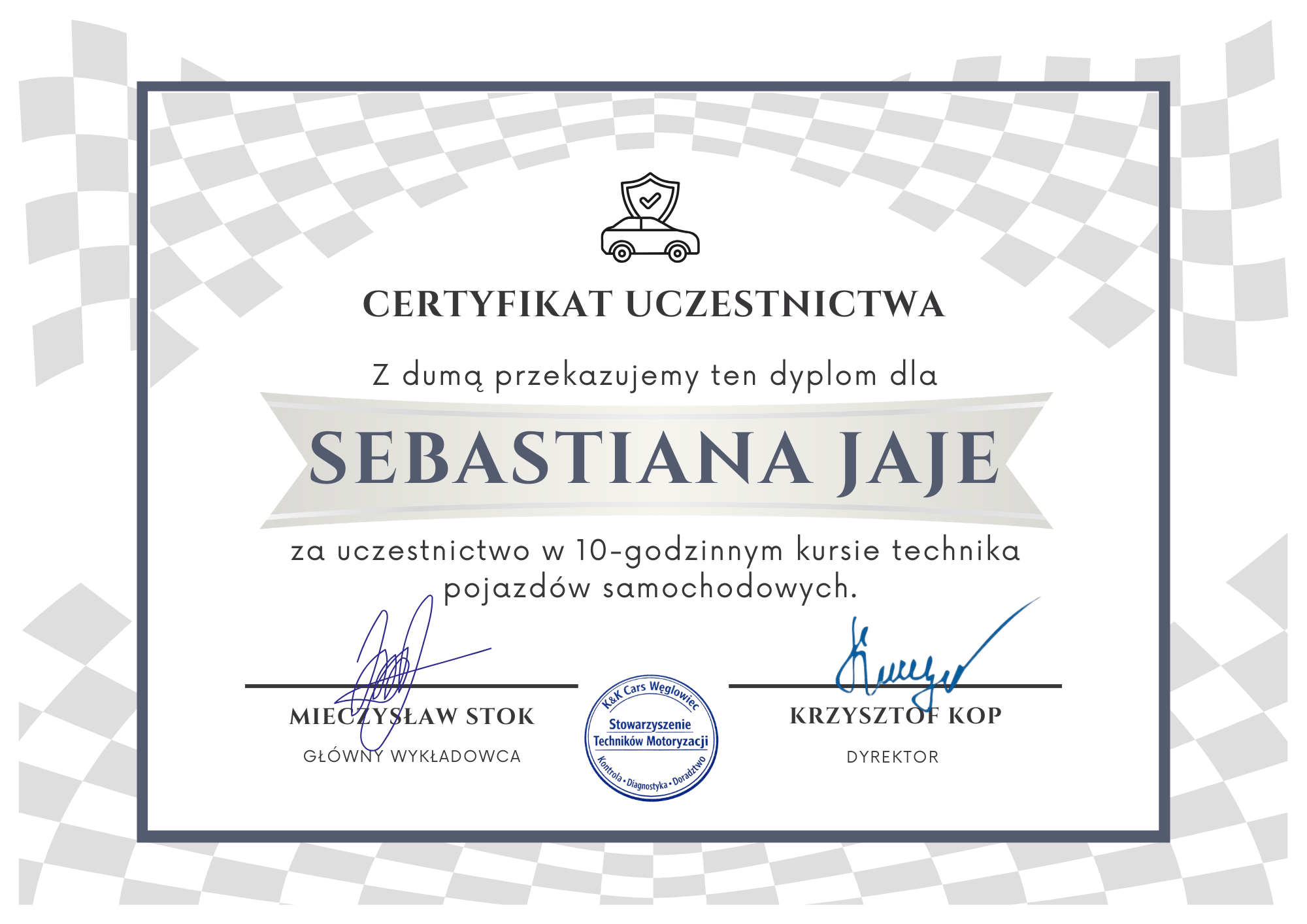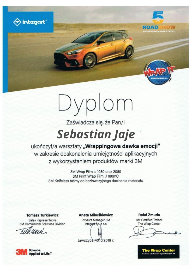 Posiadam wiele ukończonych kursów, szkoleń w zakresie lakiernictwa oraz napraw samochodowych.